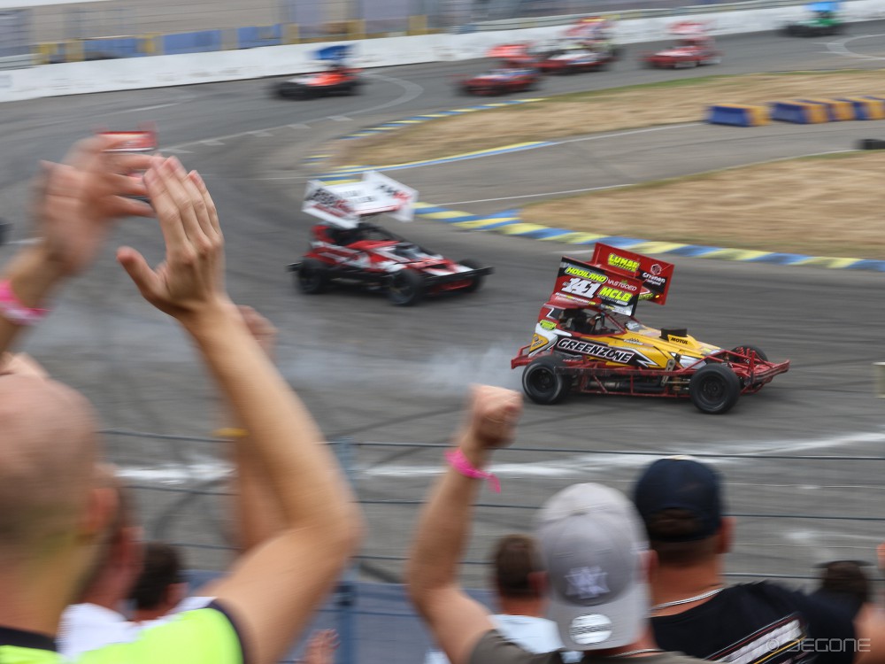 Auf der kleinen Runde war noch mehr los als im großen Oval und es gab über das ganze Rennen so viele packende Zweikämpfe, wie man es kaum noch aus anderen Motorsport-Disziplinen kennt. Die vielen Fights sind auf das Reglement zurück zu führen, denn die Schnellen starten hinten und pflügen sich durch das Feld. Wer vorne nicht schnell genug ist, muss entweder schneller fahren oder Platz machen. Macht er beides nicht, wird er vom schnelleren Hintermann auf der Piste erlegt. Es geht schon etwas rauher zu aber man hat nie das Gefühl, dass es unfair ist – der Fahrstil ist hart aber herzlich. Das Besondere an diesem Sport ist auch, dass man als Fan noch mittendrin ist. Man kommt ins Fahrerlager und ist hautnah dabei.